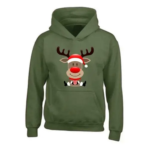 Children’s Christmas novelty reindeer hoodie. Unisex Xmas Gift for Boys and Girls.